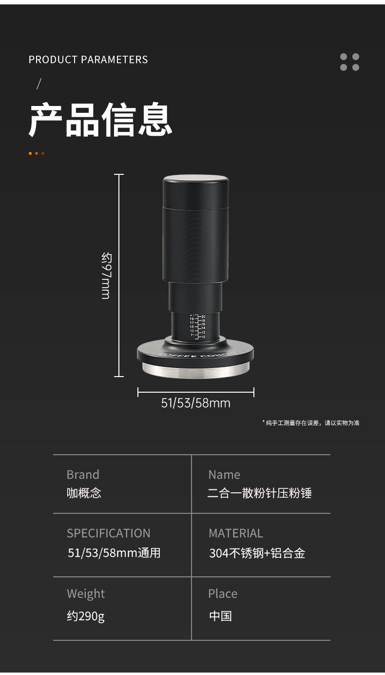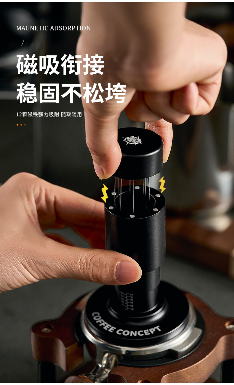 【COFFEE CONCEPT】Anti‑Distribution Coffee Tamper, Adjustable Balance Spring, Constant Pressure Coffee Tamper 3‑Piece Set