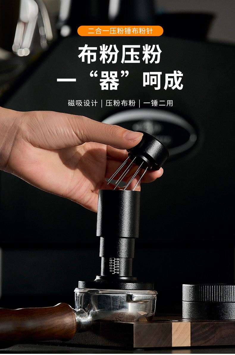 The 2-in-1 WDT Tool & Tamper combines needle distribution and constant-pressure tamping in a single ergonomic instrument — streamlining your puck preparation to one fluid motion.