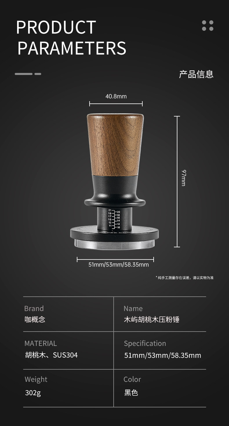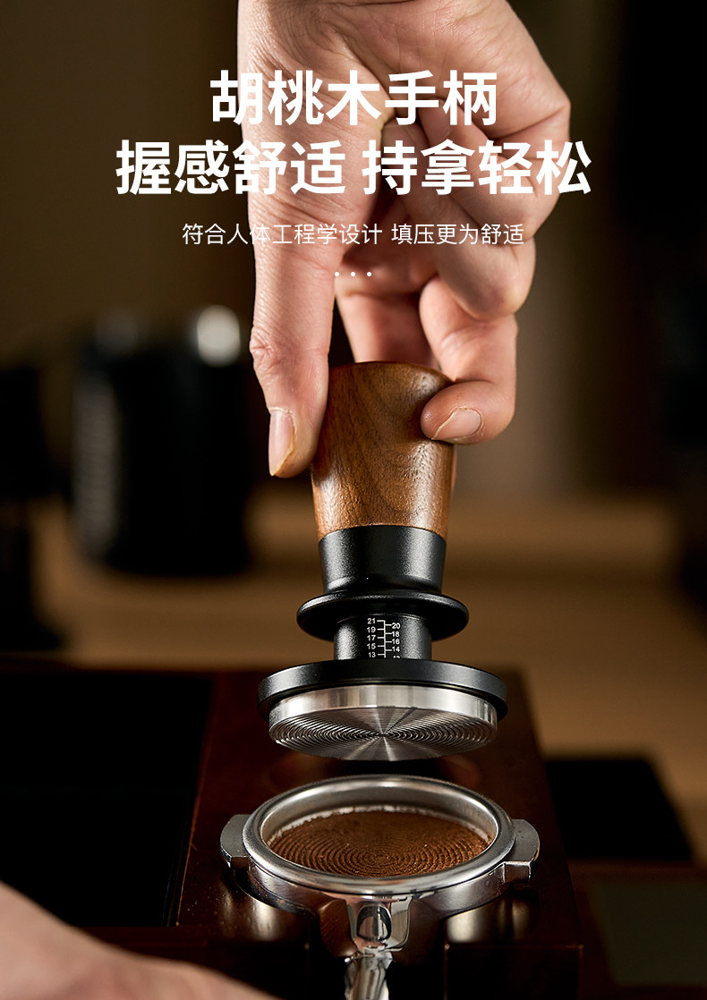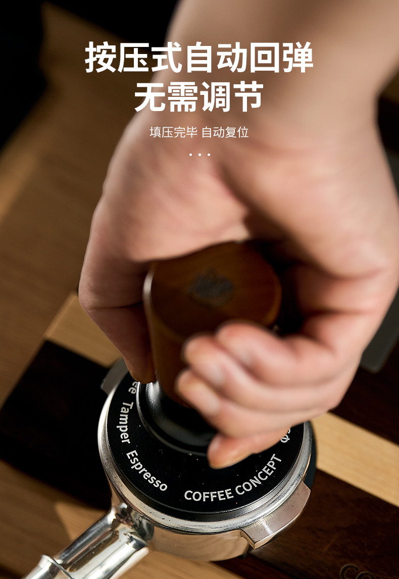 【COFFEE CONCEPT】Muyu Constant Force Coffee Tamper, Consistent Pressure Tamper, Balanced Spring Espresso Tamper, Walnut Base
