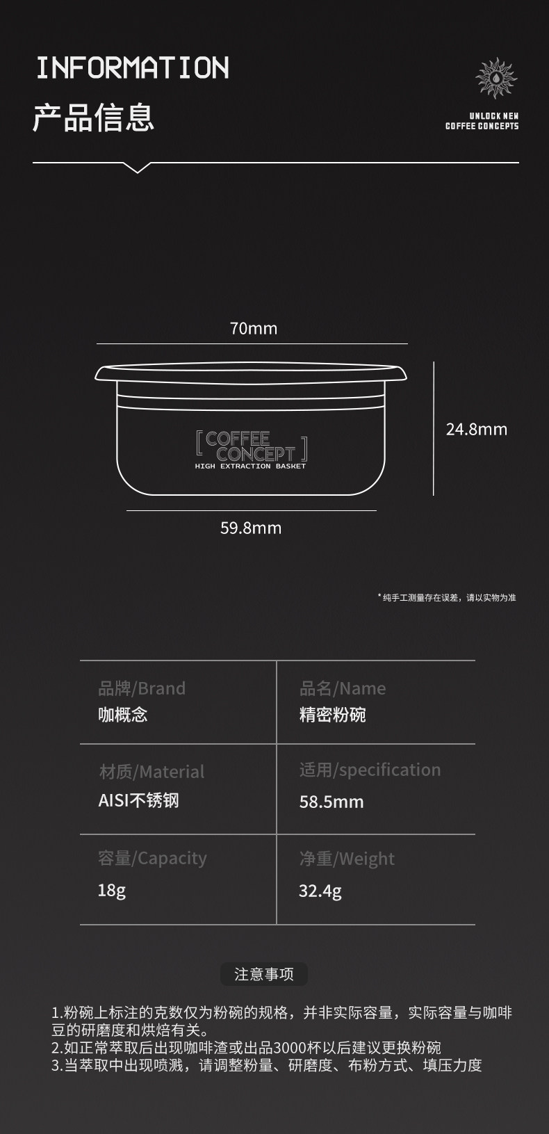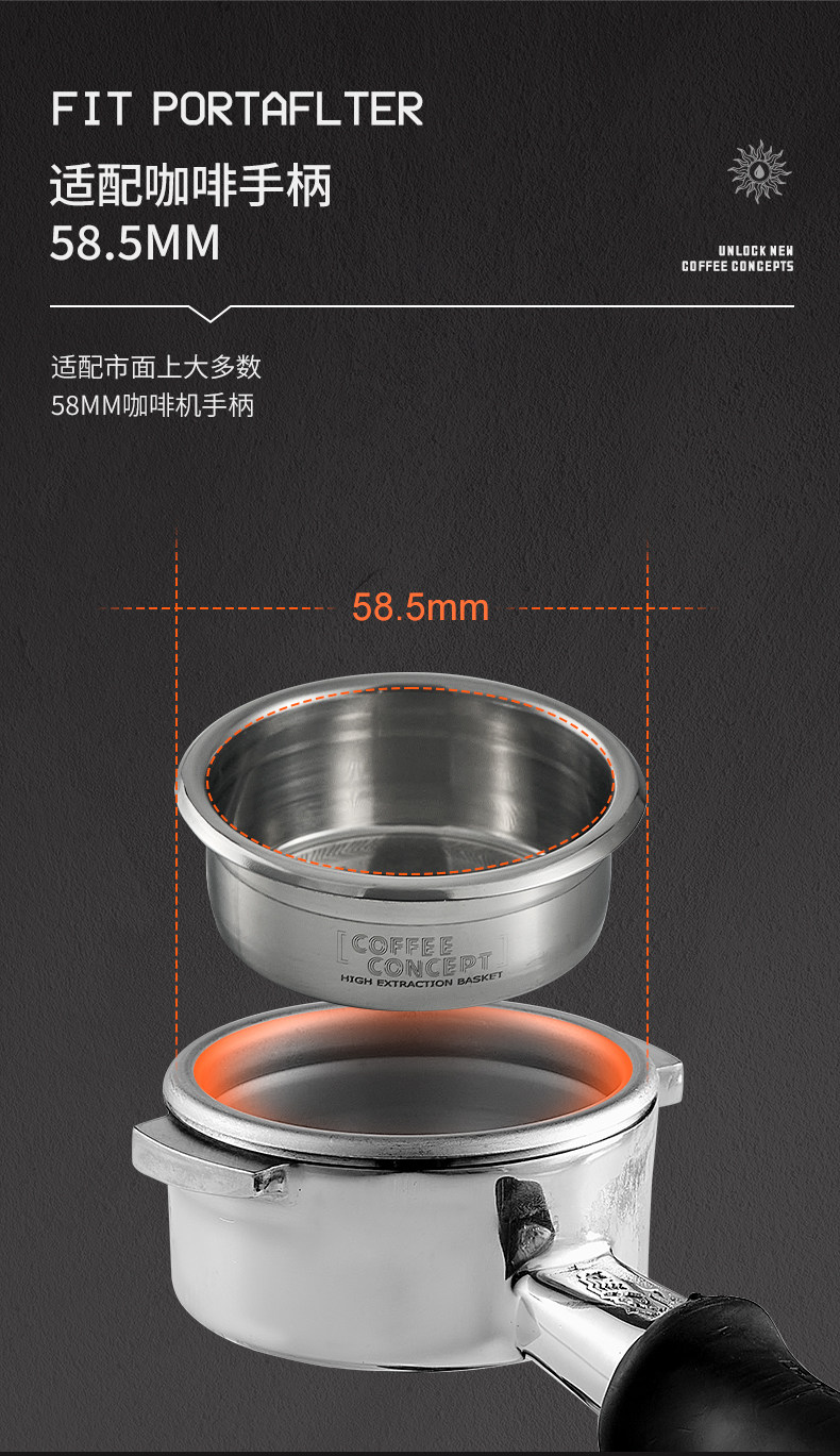 【COFFEE CONCEPT】58mm Precision Double Layer Espresso Filter Basket 18g/22g